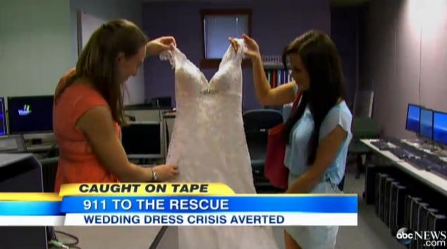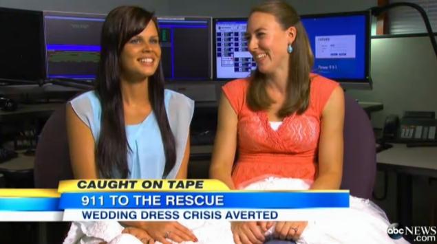 911 dispatcher Candice (right) received a frantic call from distressed bride-to-be Amanda (left) after her wedding dress was stolen the day of the ceremony.