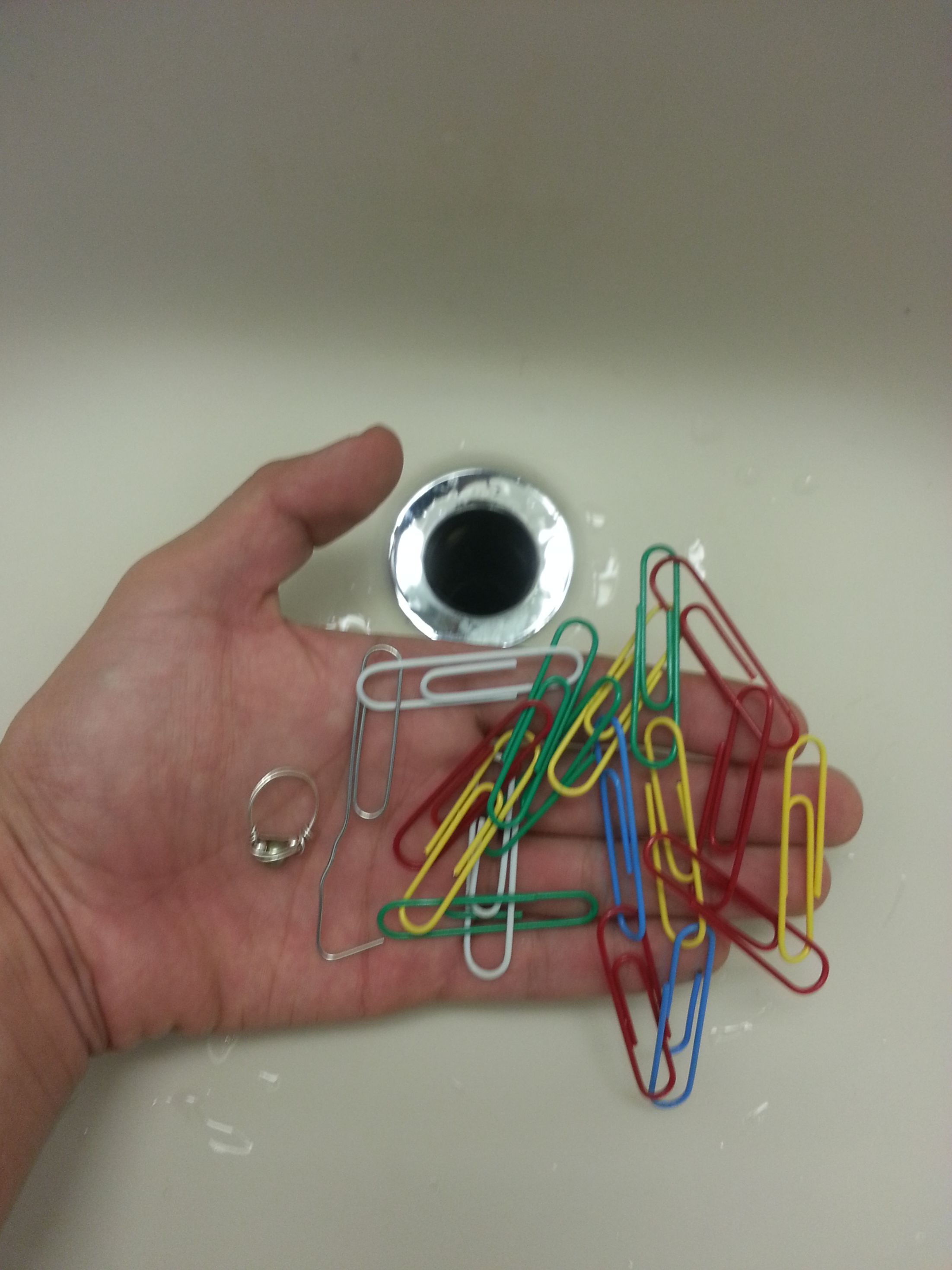 Then wrote, “She lives in a dorm so I am not allowed to undo the U trap though I wanted to. It took about an hour of dipping and pulling and neck pain from staring down the drain. The point was close but the ring means a lot to her so I had to put my pain aside to ease hers.”.