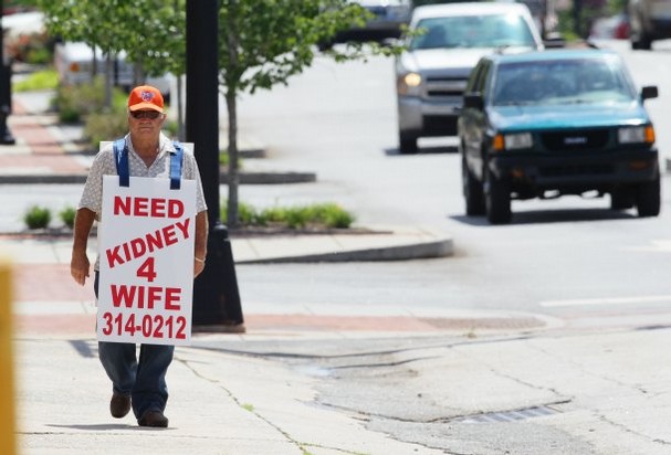 Fox Carolina reported hat the 78-year-old husband, who walked the roads of Anderson County, S.C., with a sandwich board proclaiming “Need Kidney 4 Wife,” received the stunning news that the Medical University of South Carolina found a donor.