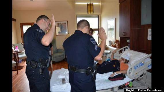 His family told police he had always wanted to be a cop. Officers Anna-Marie Cuney, Levy Slagle and Corporal Monce Portillo visited Jose in his hospice room to swear him in as a special officer to the Brighton Police Department.He was presented with an official police uniform shirt, a junior officer badge and a certificate recognizing him as a member of the department.