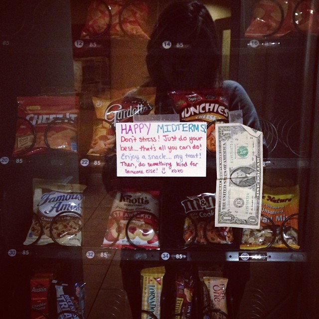 “Happy Midterms, y’all.” October 23, 2013 Kindness Blog Kindness - Real-life Examples, Kindness Photos 2 comments Kind Twitter User, Sarah Politis @SarahPolitis, shared this photo of her recent lovely gesture and tweeted: “I’m a firm believer that random acts of kindness are the best stress reliever!! Happy Midterms, y’all.” Make Someone Smile...Share Kindness Click to share on X (Opens in new window) X Click to share on LinkedIn (Opens in new window) LinkedIn Click to share on Reddit (Opens in new window) Reddit Click to share on Pinterest (Opens in new window) Pinterest Click to share on Tumblr (Opens in new window) Tumblr Click to share on Pocket (Opens in new window) Pocket Click to email a link to a friend (Opens in new window) Email Click to print (Opens in new window) Print Click to share on WhatsApp (Opens in new window) WhatsApp Click to share on Telegram (Opens in new window) Telegram Like Loading... Related