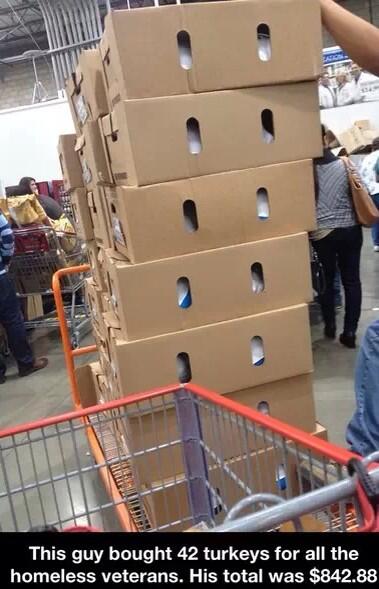 Truly thoughtful and not enough of this is done in our society. Yet the question begs, how and where do the homeless store/cook/prepare a frozen turkey? The logistics confuse.