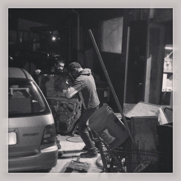 “The amazing Bradley spending hours replacing my broken window after vandals smashed it and stole my breastpump at 4pm right outside the show yesterday. Hope the people who stole my pump find use for that 16oz of milk. Lesson- don’t leave a crappy black milk splotched backpack in a crappy 95 odyssey van?”