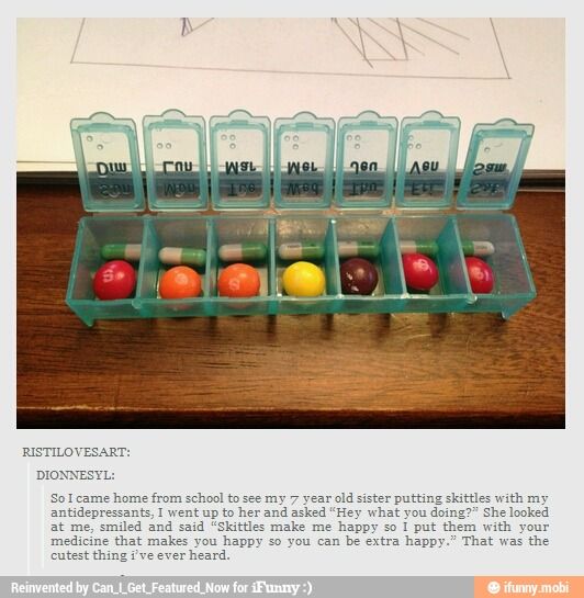 Sweet but sad a 7 year old is associating happiness with anti-depressants!