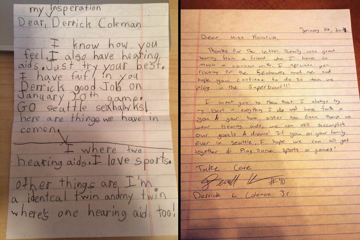 Thanks for the letter. Really was great hearing from a friend who I have so much in common with. I aprciate [sic] you rooting for the Seahawks and me and hope you continue to do so when we play in the Superbowl!!!