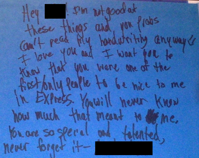 This Was Written in the Back of Their Senior Year Book by a New Kid who was in Their choir. February 3, 2014 Kindness Blog Kindness, Kindness - Real-life Examples, Kindness Photos Leave a comment “It’s a great reminder to me to always be kind, because there may be someone out there who needs and appreciates your kindness”Source: Anonymous Make Someone Smile...Share Kindness Click to share on X (Opens in new window) X Click to share on LinkedIn (Opens in new window) LinkedIn Click to share on Reddit (Opens in new window) Reddit Click to share on Pinterest (Opens in new window) Pinterest Click to share on Tumblr (Opens in new window) Tumblr Click to share on Pocket (Opens in new window) Pocket Click to email a link to a friend (Opens in new window) Email Click to print (Opens in new window) Print Click to share on WhatsApp (Opens in new window) WhatsApp Click to share on Telegram (Opens in new window) Telegram Like Loading... Related