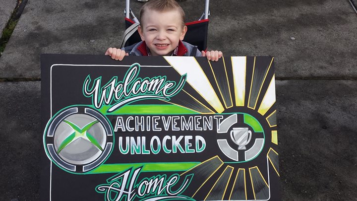 Terminal 5 of the International Airport as a delighted Brandon held his son for the first time. First meeting: Sgt Brandon Niles meets his son, Braedo