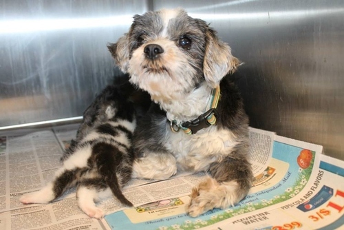 Animal control officers in Anderson, S.C., thought that a barking shih tzu was stuck in a ravine. Turns out, she was there nursing and protecting a tiny abandoned kitten she had found.