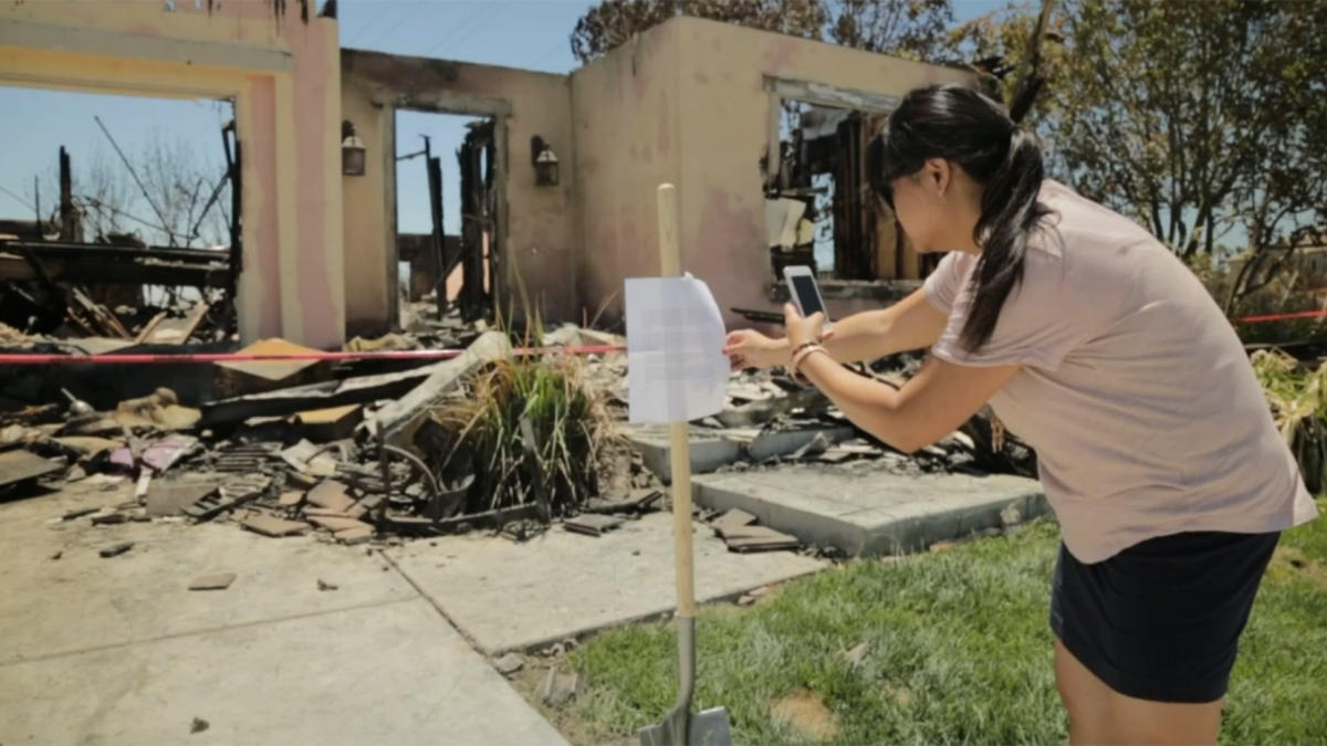 The piece of paper – 189 words signed only with the letters “GB” – was anonymously left behind, taped to a shovel standing in the charred front yard of a home reduced to rubble.