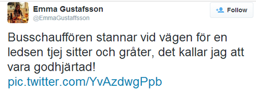 “A bus driver André Grandin was driving his regular bus route in South-Sweden, when he saw a young girl crying on the pavement. He stopped the bus, which was full of passengers, and stepped outside to soothe the girl and ask what’s wrong. The girl had been bullied by her classmates.”