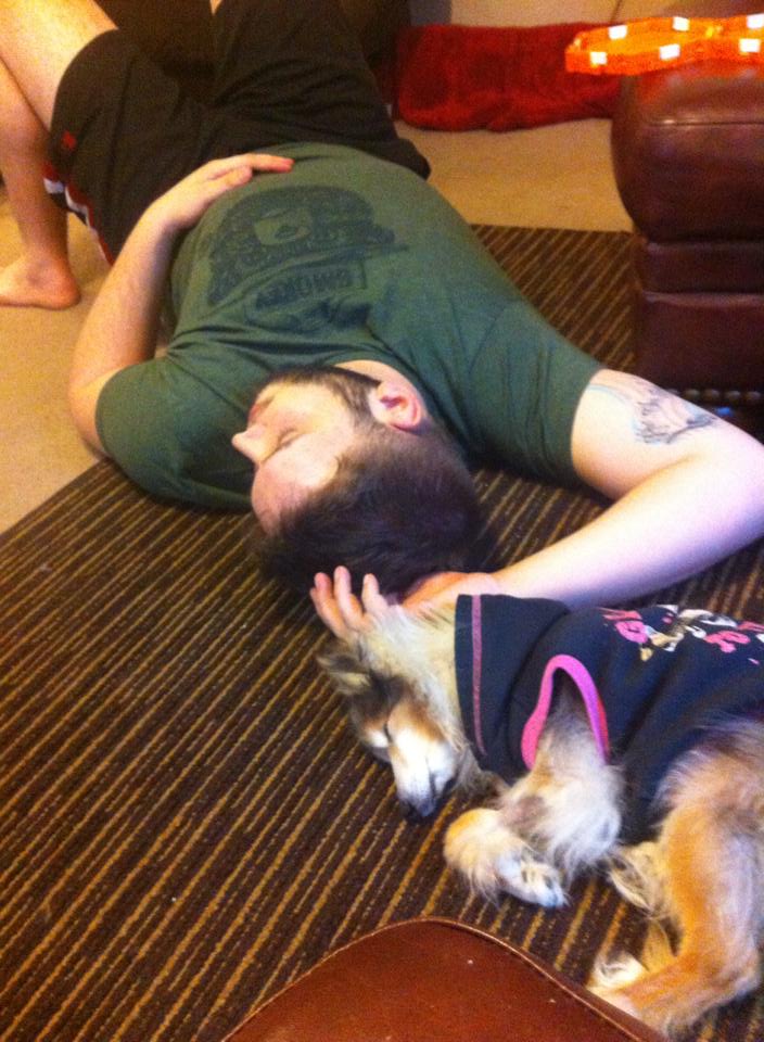 “I thought that I would have to herd him away from doors all day until I could clock out and take him home. The little guy fell asleep on the floor and stayed there all day.”