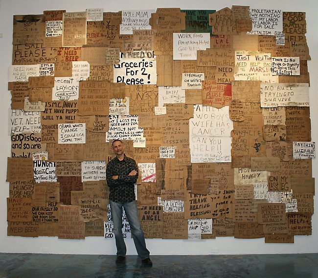 This project began in 1993 when Willie started buying and collecting signs from the homeless. Over the past few years he has developed art work using the signs, as he has pursued an MFA in Arts & Technology at UTDallas.