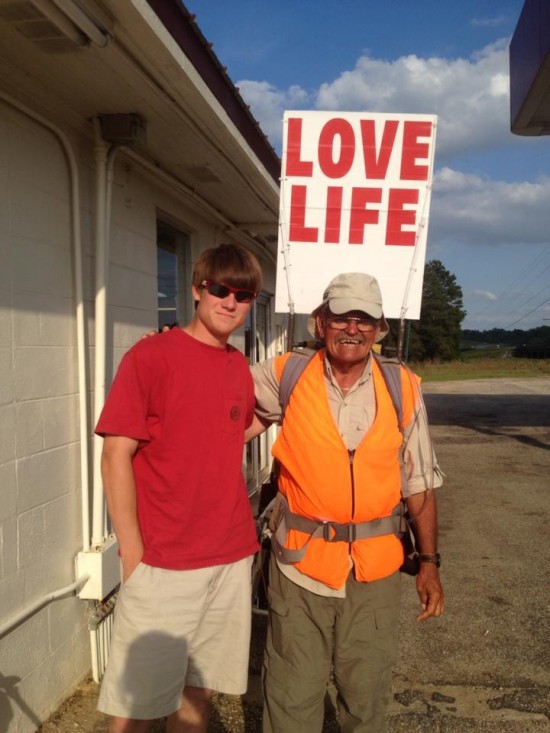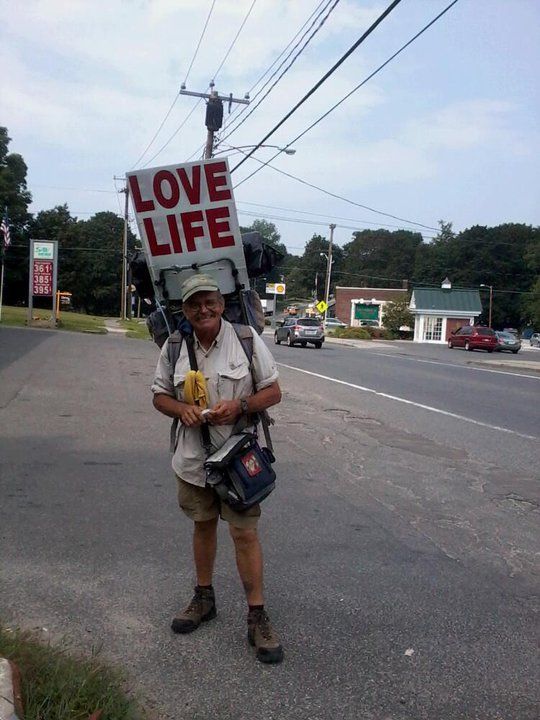 Fugate always sets out on a walk with a sign that reads: ‘Love Life’. He says it brings out the best in people. Some people give him snacks and water, others offer him cash. “That happens all the time,” he said. “People think I’m homeless, but I’m not. But I never ask for money; the only things I ever ask for is a bottle of water or a place to charge my electronics, my phone and laptop.”