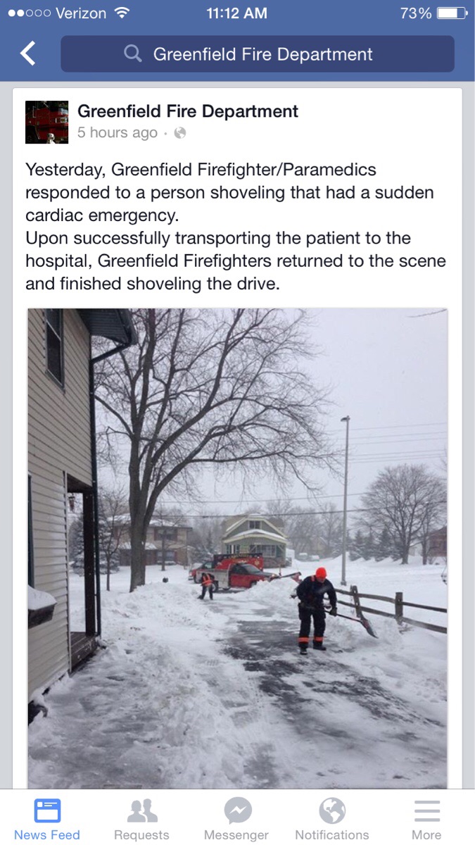 Hopefully, the heart attack victim has a successful recovery, and upon his return, a shoveled driveway that neighbors and family members will continue keeping shoveled for him.