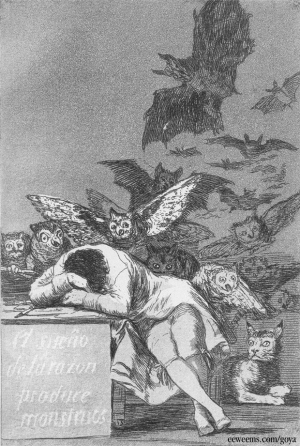 I had not thought much about that image since then, until it reappeared recently. Somehow, my subconscious had linked the image of those gripping gorilla toes to the famous work of art by Francisco Goya titled The Sleep of Reason Produces Monsters.