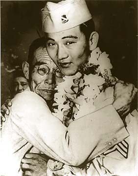 (7) A Japanese-American man tearfully welcomes his son home from WW2.