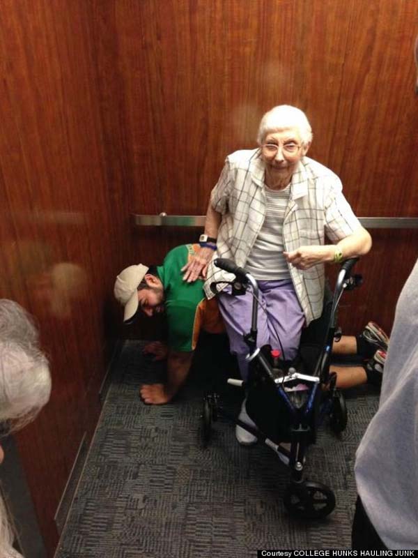 (19) A man stopped running to catch his train to help an older woman who was struggling with her bags.