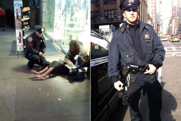 (24) During harsh weather, this outstanding police officer bought boots for a shoe-less homeless man