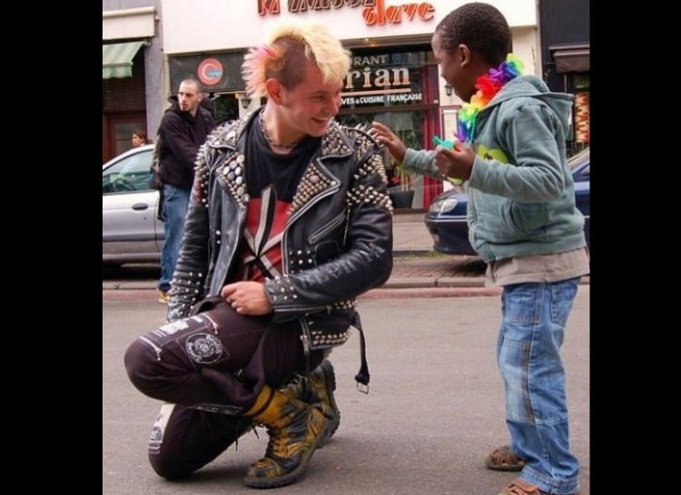 (46) Punk rocker lets a little kid touch his spiked jacket